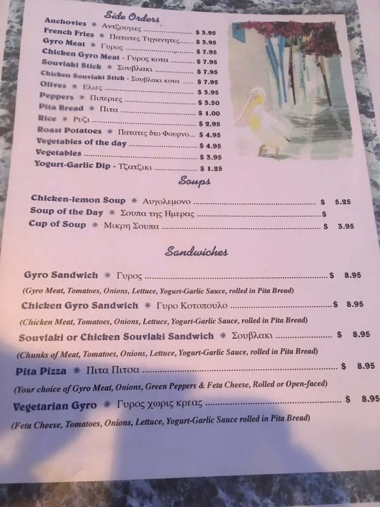 Your choice of gyro meat, onions, green peppers and feta cheese, rolled or openfaced.